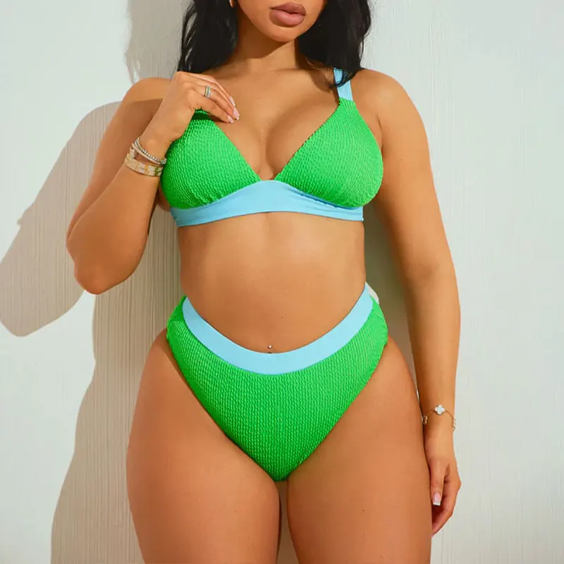 Swimwear Manufacturer Custom Swimsuits Print Design Triangle Bikini Set Two Piece Beachwear Women's Seersucker Swimsuit